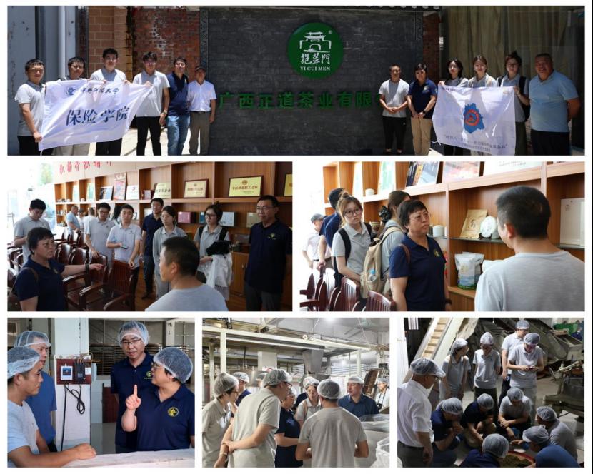 在加工车间参观时,团队成员需佩戴头套与鞋套进入生产区。整个流程干净整洁、有序规范,充分体现了企业对品质细节的严格把控。此外,正道茶业还与广西职业技术学院开展产学研合作,不仅让企业技师返校深造,也为茶学专业的学生提供了宝贵的实训平台。