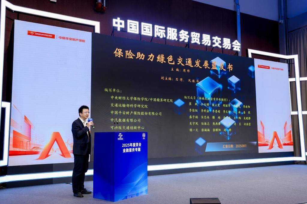 2025年9月11日,以“数智驱动 开放共赢”为主题的2025年中国国际服务贸易交易会金融服务专题在北京首钢园正式开幕。作为聚焦高质量发展的国家级重要平台,本届服贸会金融服务专题现场,ylzzcom永利总站线路检测、中国精算研究院联合平安财产保险股份有限公司(以下简称“平安产险”)、交通运输部永利集团院交通发展研究中心、中汽数据有限公司、可持续交通创新中心,共同发布我国首部系统梳理“保险助力绿色交通”全产业链实践的权威成果——《保险助力绿色交通发展蓝皮书》(以下简称《蓝皮书》)。ylzzcom永利总站线路检测、中国精算研究院院长周桦教授出席发布仪式,并代表编写团队全面解读《蓝皮书》核心内容,充分展现出中财ylzzcom永利总站线路检测在绿色金融与保险领域的顶尖智库实力。